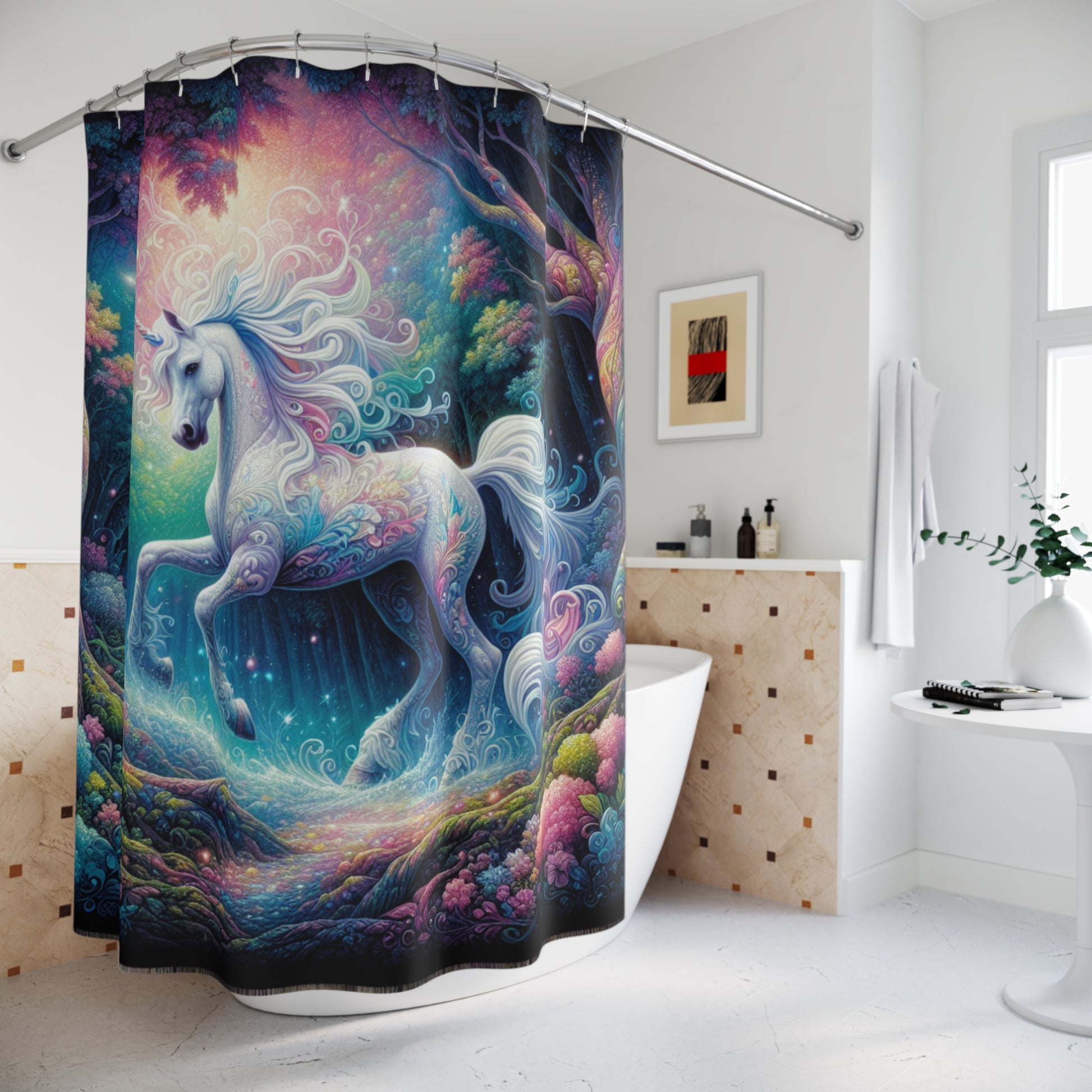 Verwandle dein Badezimmer mit dem Dream Einhorn Duschvorhang in eine magische Welt! Das fantasievolle Design zieht alle Blicke auf sich und bringt Farbe und Abenteuer in deinen Alltag. Ein echter Hingucker, der deinem Raum eine mutige, einzigartige Atmosphäre verleiht. Trau dich, anders zu sein!