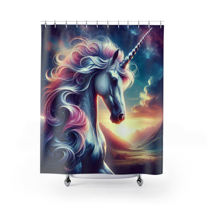 Entdecken Sie die zauberhafte Welt der Einhörner mit unserem wunderschönen Duschvorhang. Verwandeln Sie Ihr Badezimmer in eine magische Oase und lassen Sie sich von der Schönheit und Eleganz der Einhörner verzaubern. Verleihen Sie Ihrem täglichen Duschritual einen Hauch von Fantasie und machen Sie es zu einem besonderen Erlebnis.