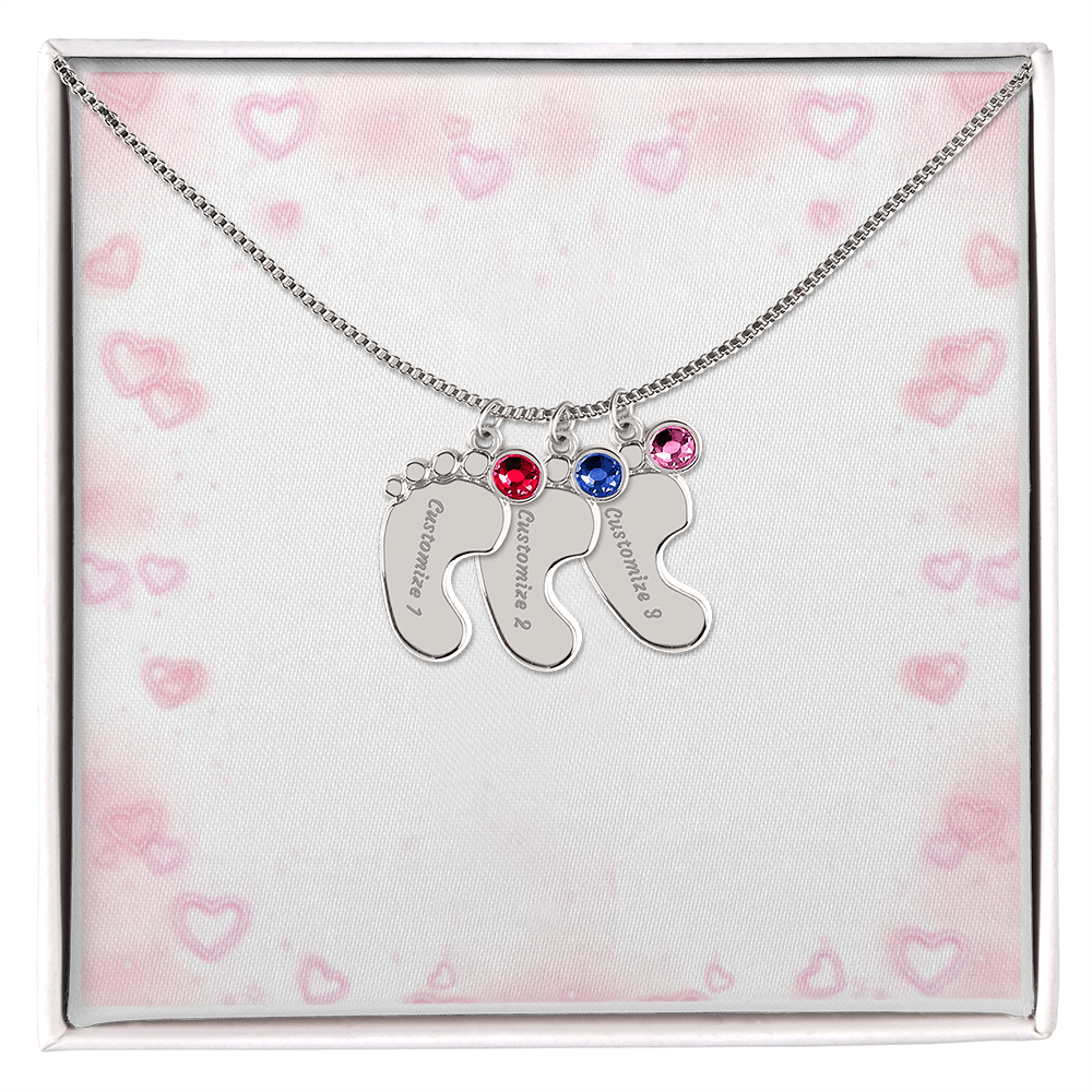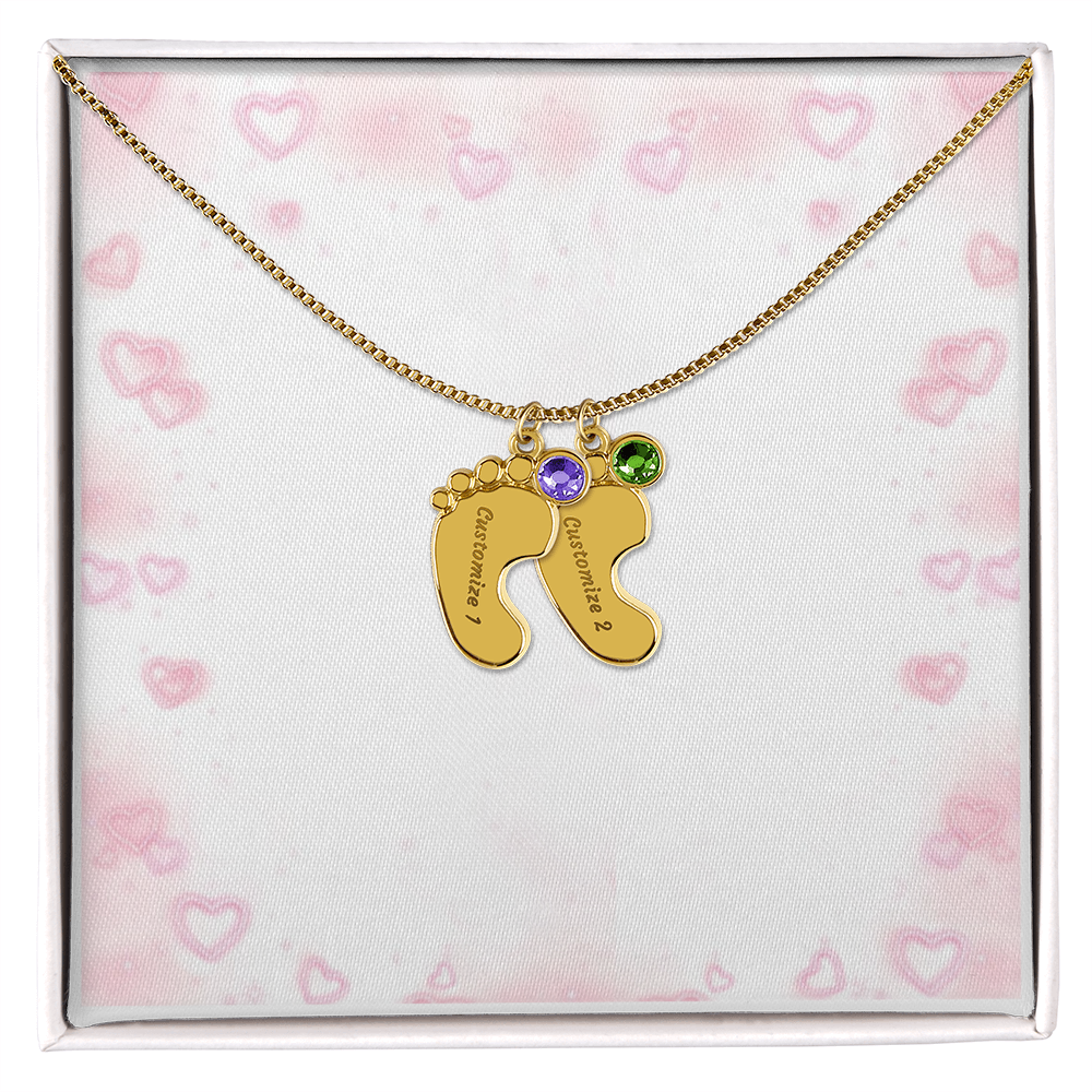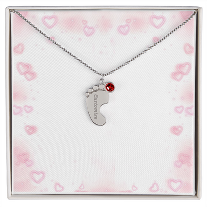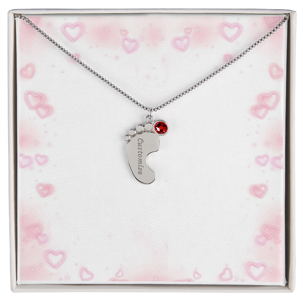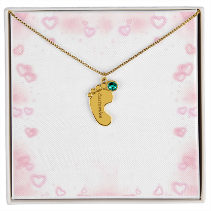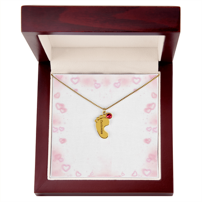 Gravierte Babyfüßchen-Halskette mit Geburtsstein