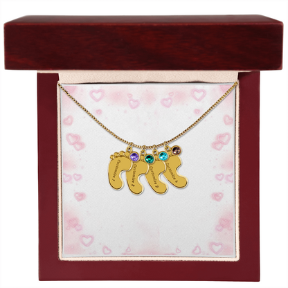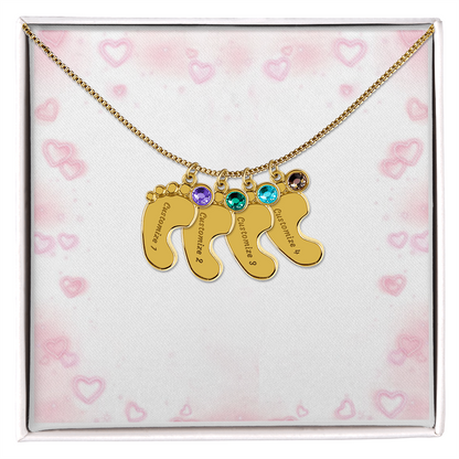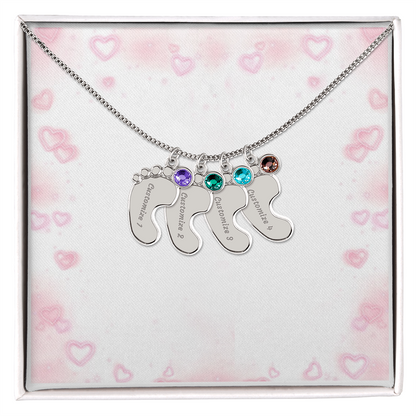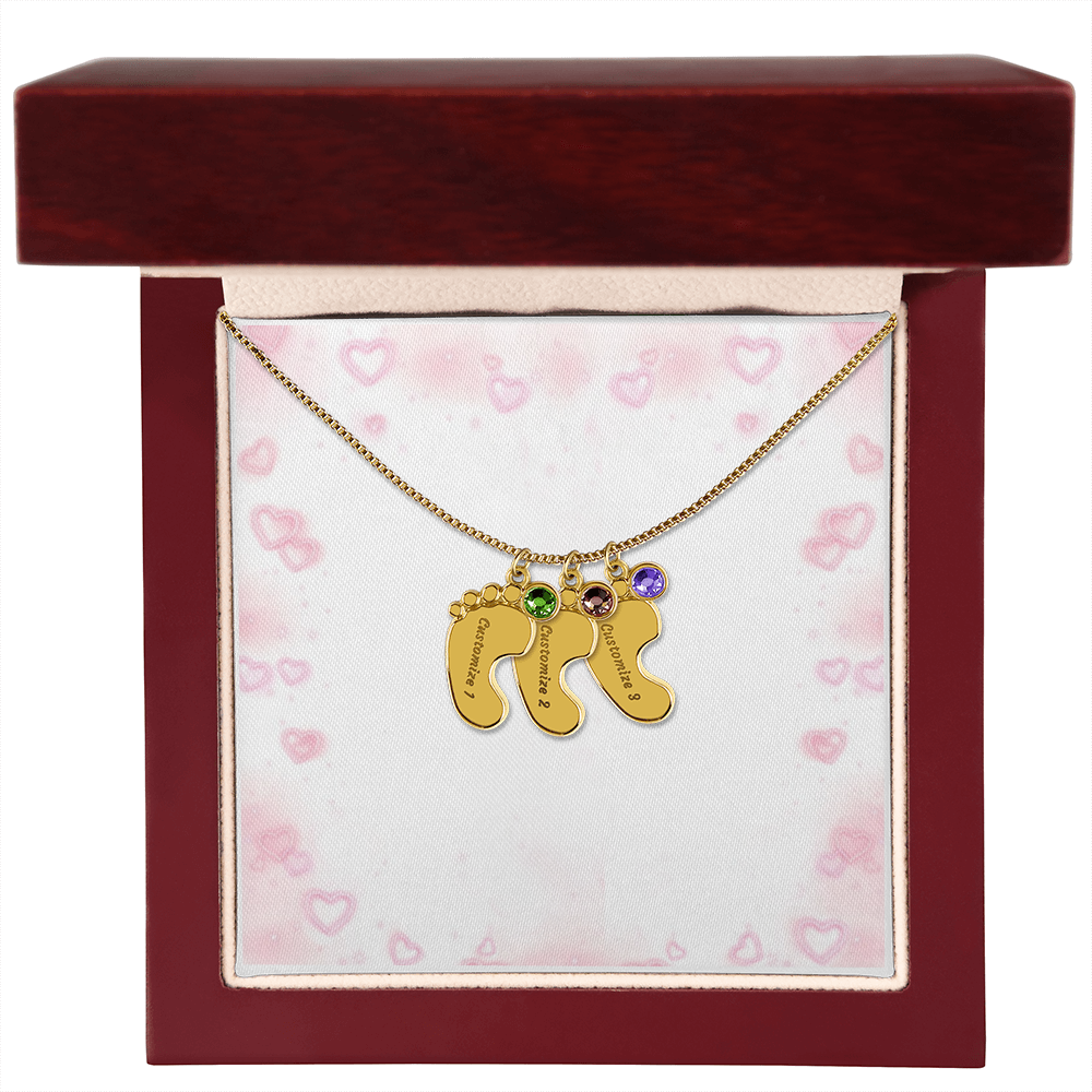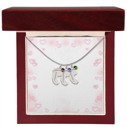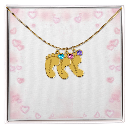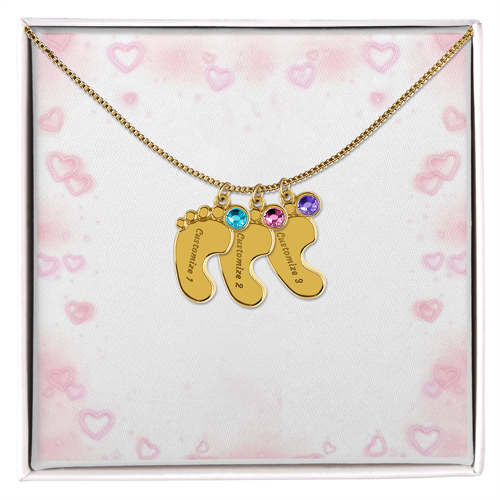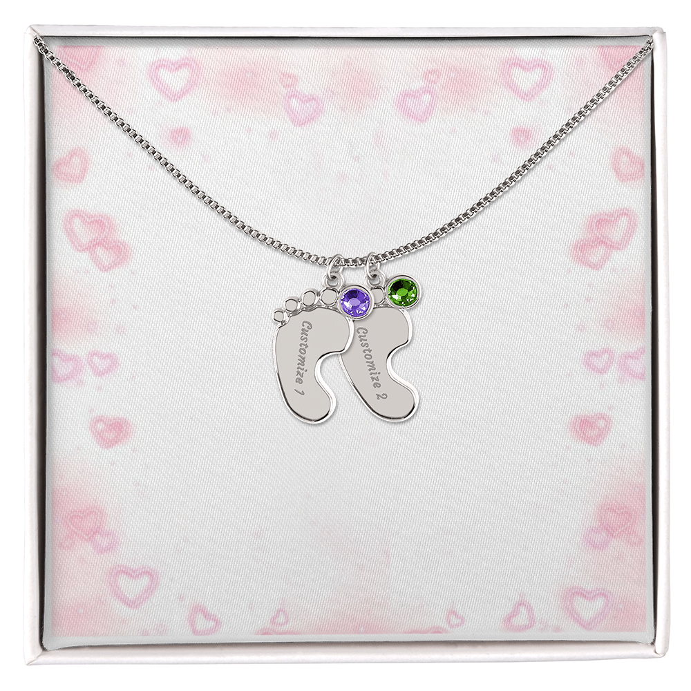 Gravierte Babyfüßchen-Halskette mit Geburtsstein