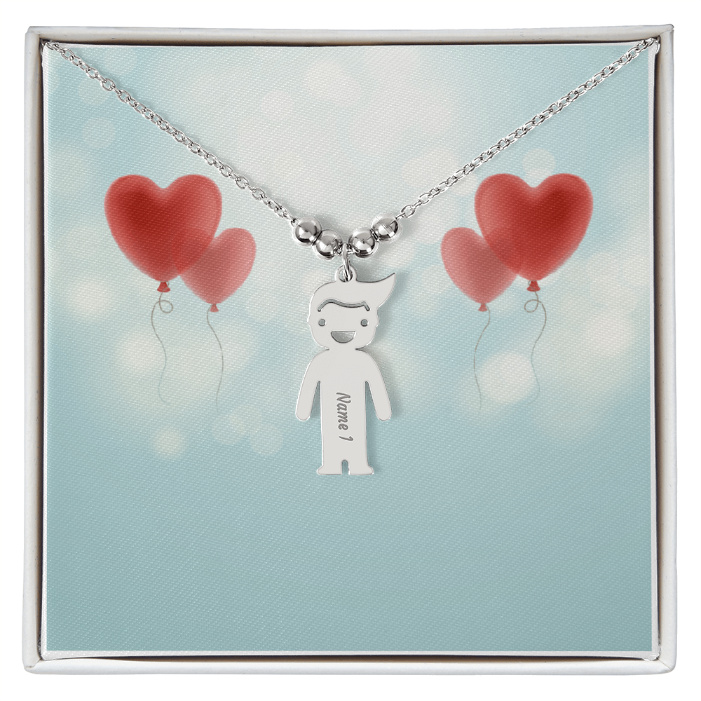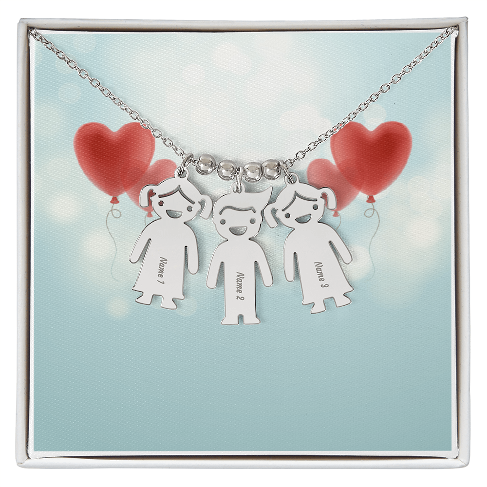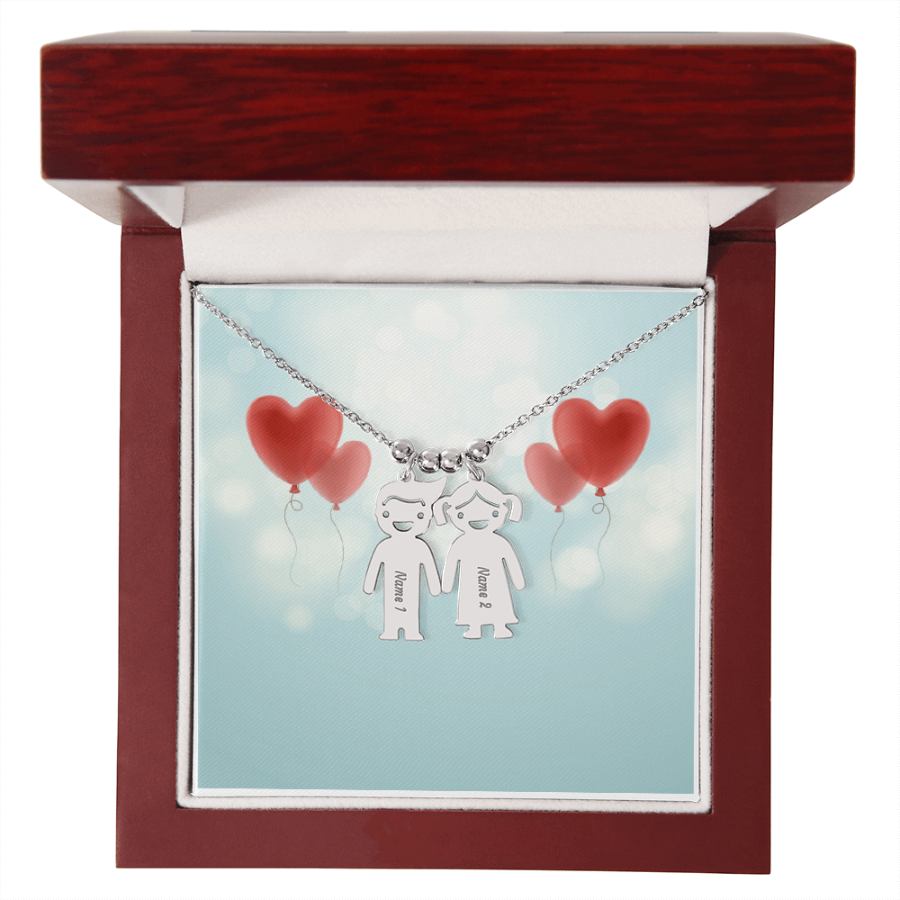 Dieses unvergessliche Geschenk wird sie sprachlos machen! Vorstellen möchten wir Ihnen die Gravierte Kinderanhänger-Halskette. Diese Halskette verfügt über bis zu drei gravierte Anhänger, die jeweils die Form eines Kindes haben und mit dem Namen oder Wort Ihrer Wahl personalisiert werden können. Hergestellt aus hochwertigen Materialien, ist diese Halskette das perfekte Geschenk für Mütter und Großmütter, die ihre Kinder oder Enkelkinder in der Nähe ihres Herzens behalten möchten. Ob Sie einen besonderen Moment feiern möchten, einen Meilenstein erreicht haben oder einfach Ihre Liebe ausdrücken möchten - diese Halskette ist dafür perfekt geeignet.