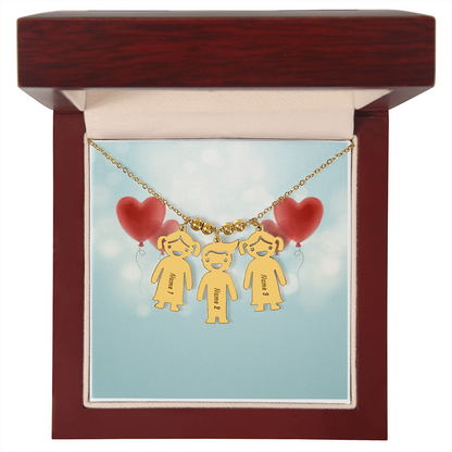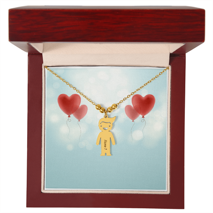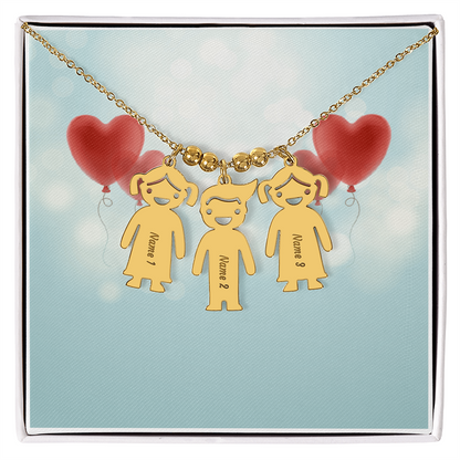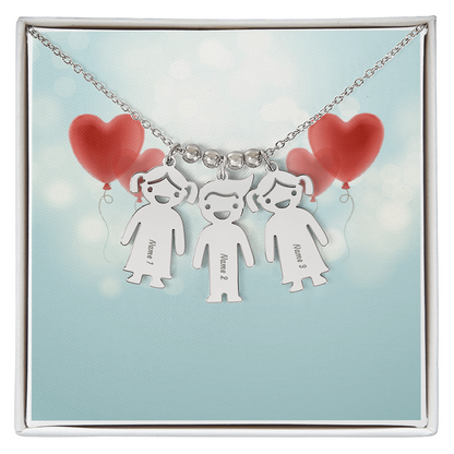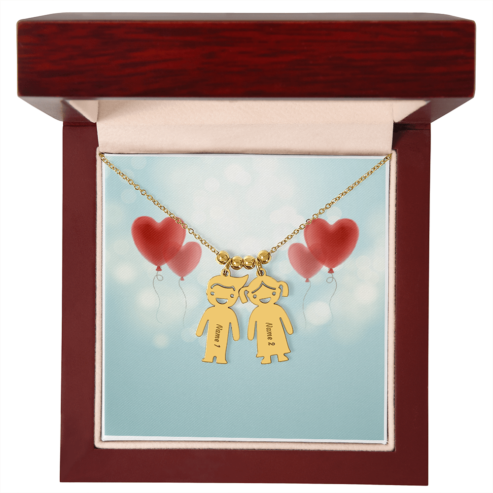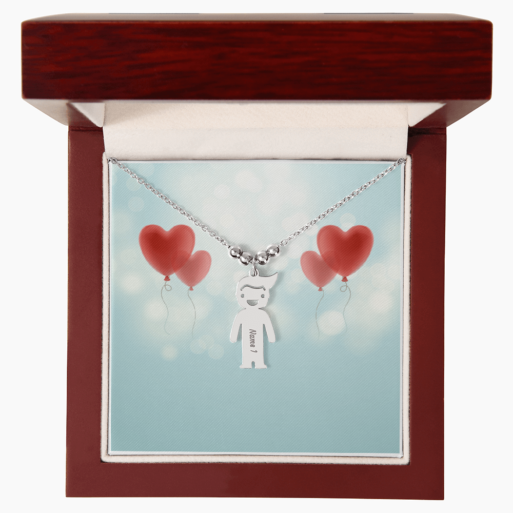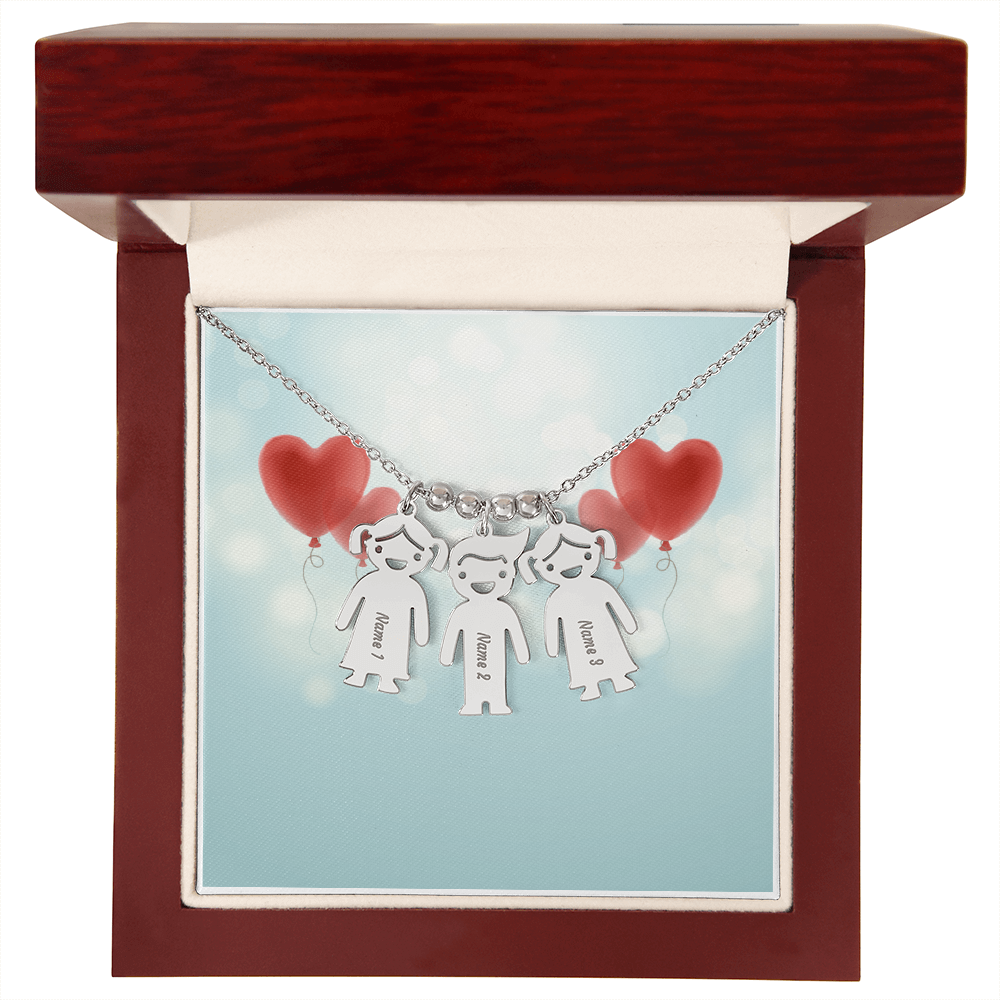 Dieses unvergessliche Geschenk wird sie sprachlos machen! Vorstellen möchten wir Ihnen die Gravierte Kinderanhänger-Halskette. Diese Halskette verfügt über bis zu drei gravierte Anhänger, die jeweils die Form eines Kindes haben und mit dem Namen oder Wort Ihrer Wahl personalisiert werden können. Hergestellt aus hochwertigen Materialien, ist diese Halskette das perfekte Geschenk für Mütter und Großmütter, die ihre Kinder oder Enkelkinder in der Nähe ihres Herzens behalten möchten. Ob Sie einen besonderen Moment feiern möchten, einen Meilenstein erreicht haben oder einfach Ihre Liebe ausdrücken möchten - diese Halskette ist dafür perfekt geeignet.