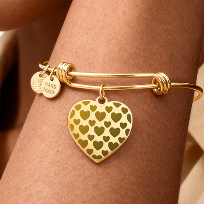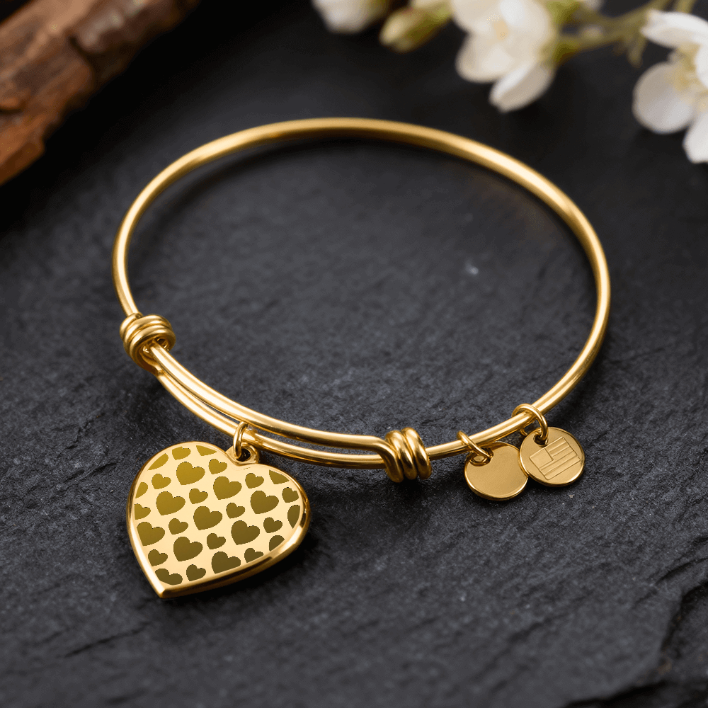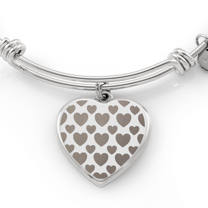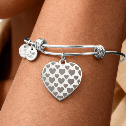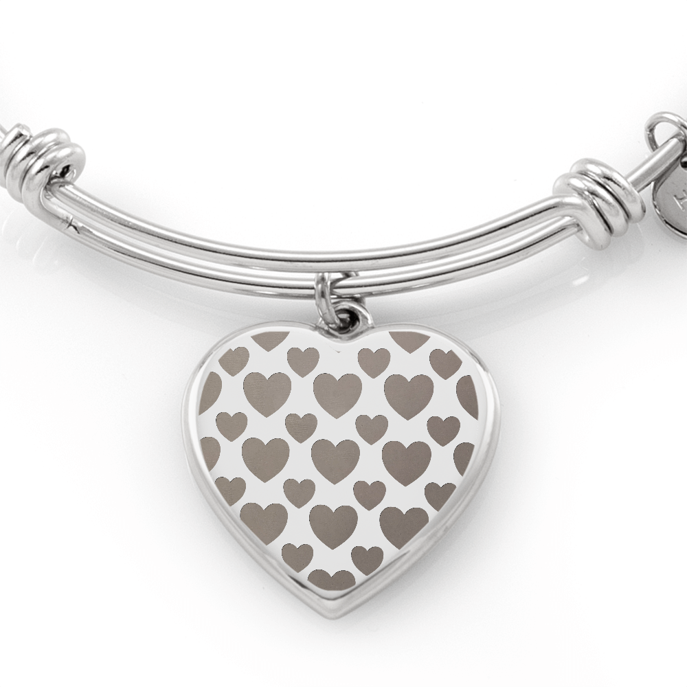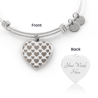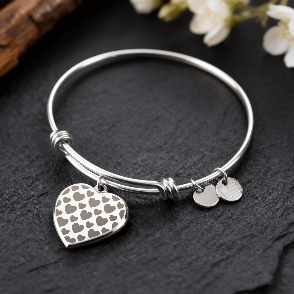 Erstellen Sie ein zeitloses Andenken mit unserem gravierten Luxury Heart Bangle. Aus hochwertigem Edelstahl gefertigt, kann dieses Schmuckstück auf der Rückseite mit bis zu 20 Zeichen in unserer charakteristischen Tangerine-Schriftart personalisiert werden.
