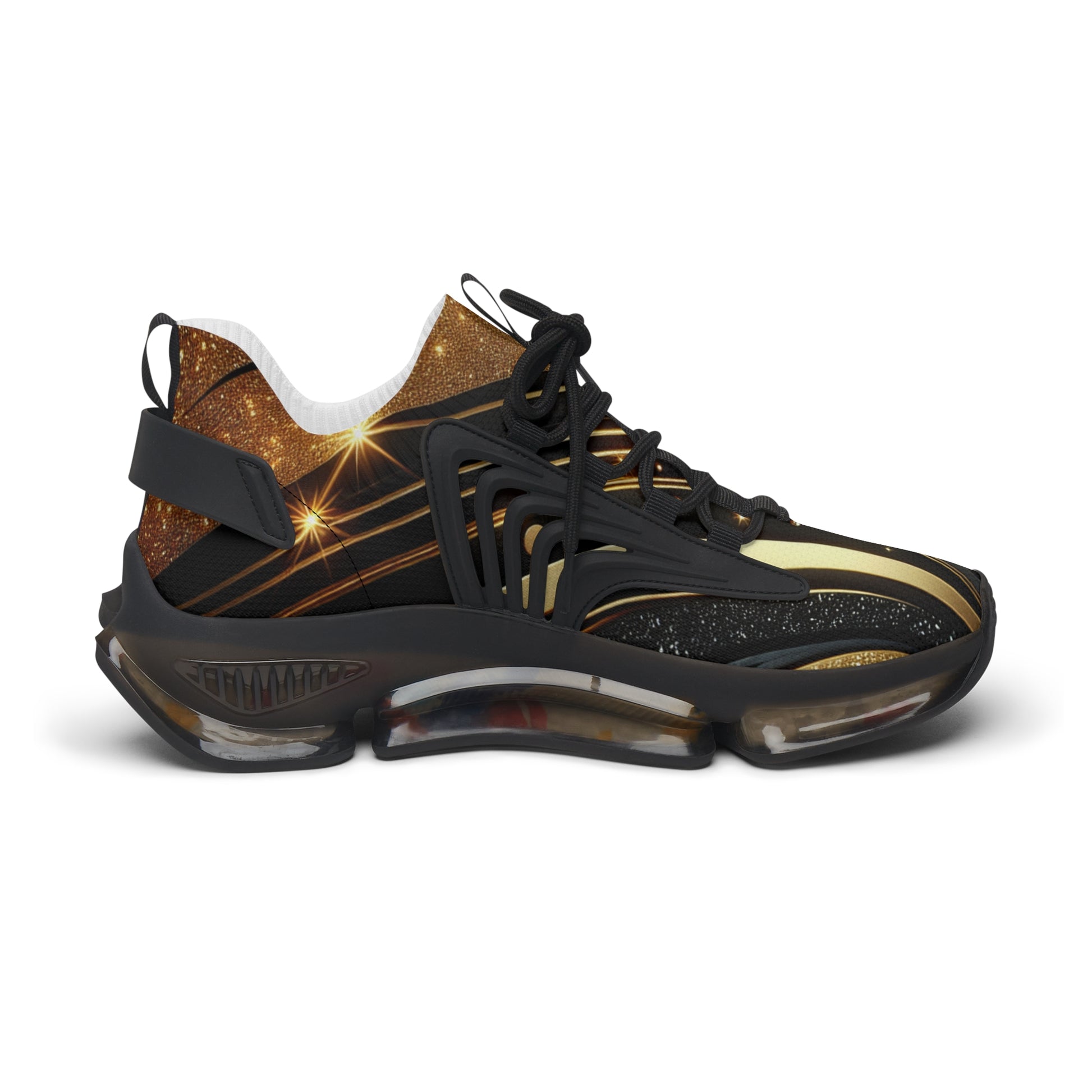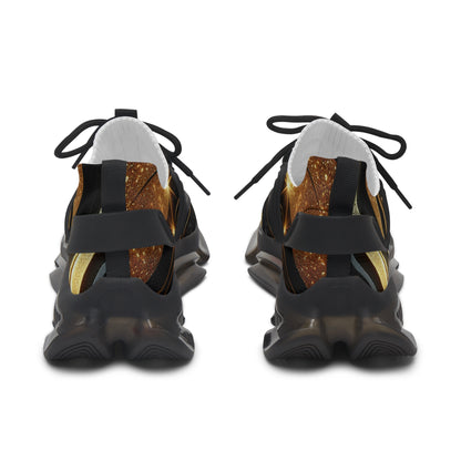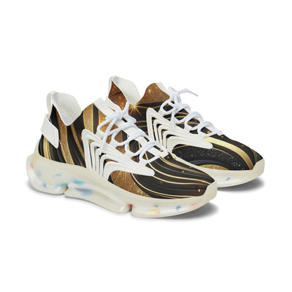 Mesh Sneakers — Black & Gold Swirl Athletic Shoes