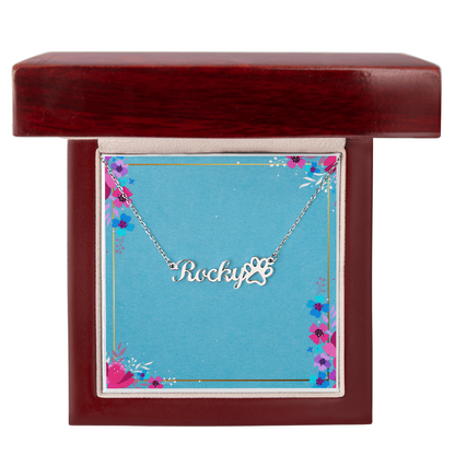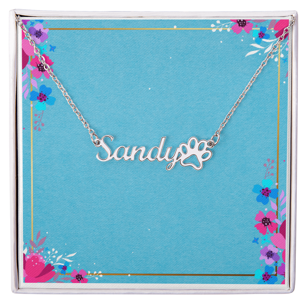 Dieser stilvolle Anhänger verfügt über ein kursives Namensdesign und ein Pfotenabdruck-Symbol, das an einer verstellbaren Kabelkette von 16”-18” aufgehängt ist und ihn sowohl persönlich als auch schön macht! Ihr Anhänger wird nach Bestellung individuell mit dem gewünschten Namen oder Wort mit bis zu 10 Zeichen angefertigt. Es ist ein Geschenk, das sie sicherlich für immer nahe am Herzen tragen möchten!