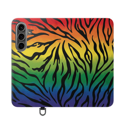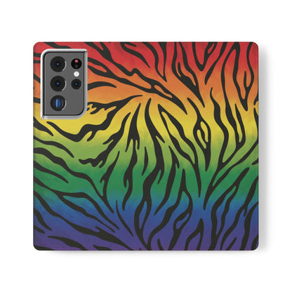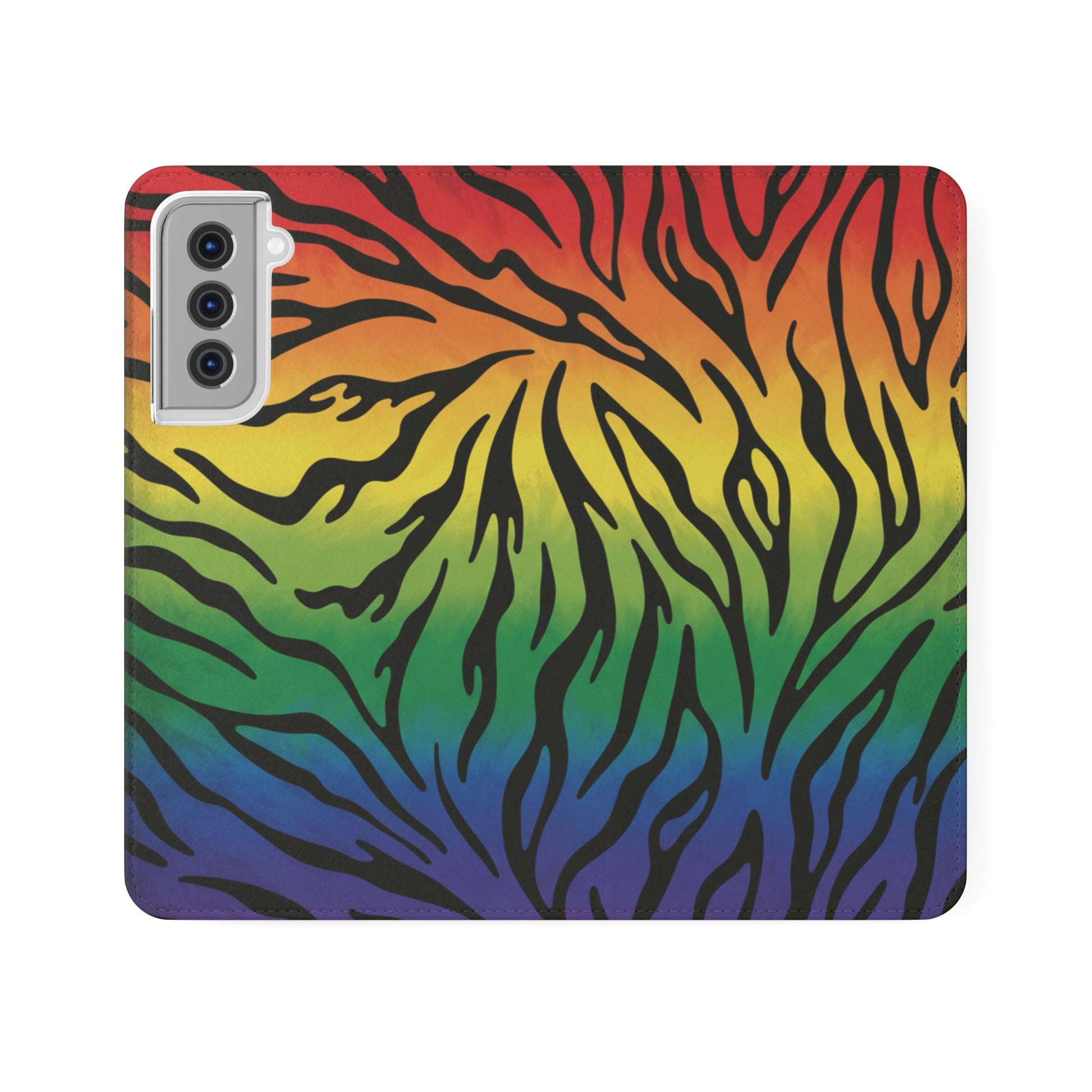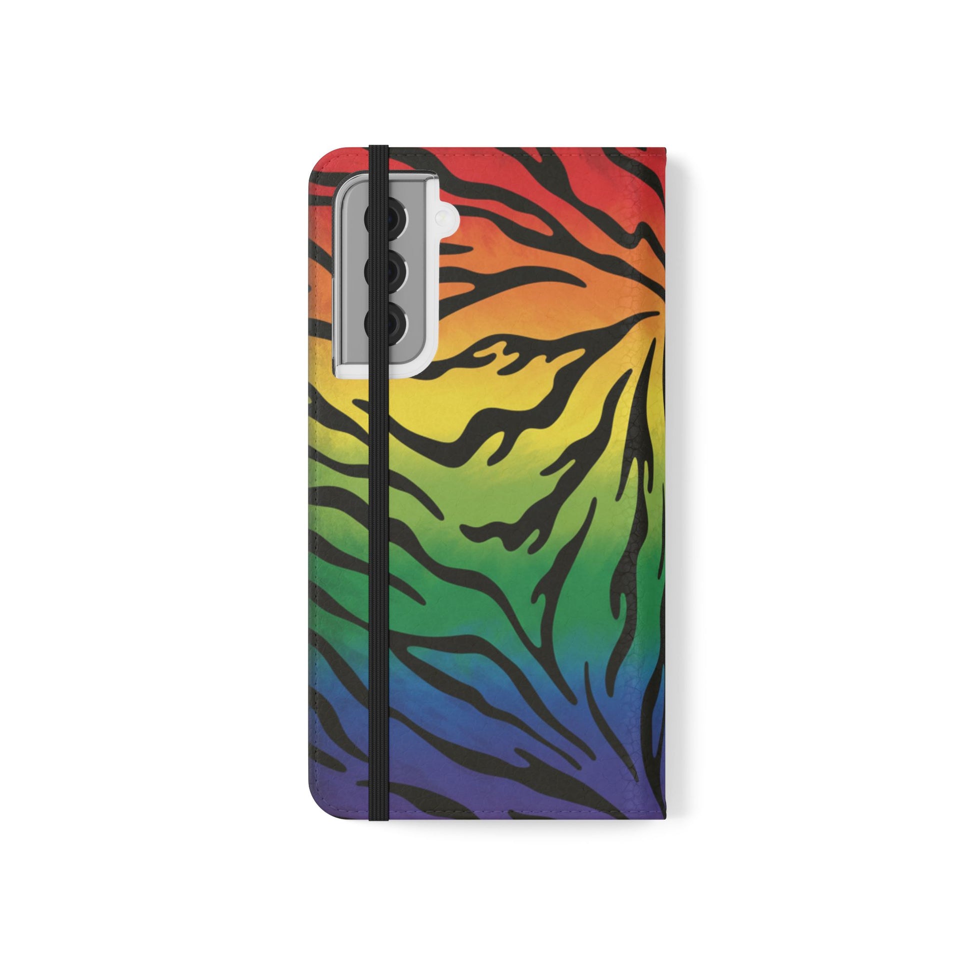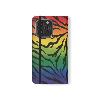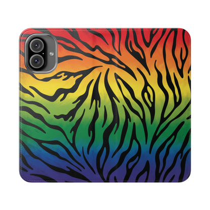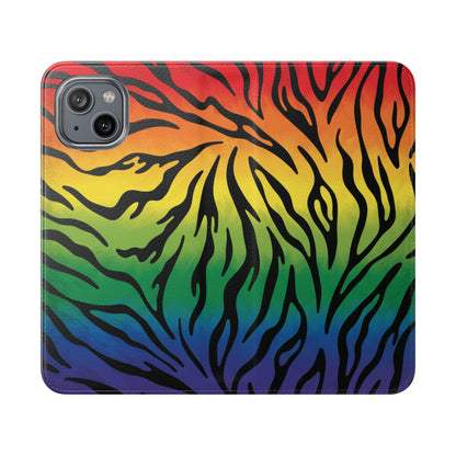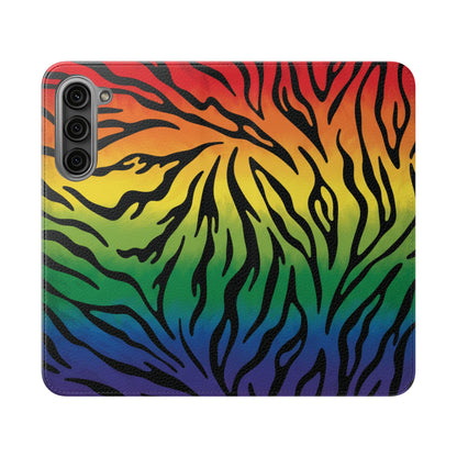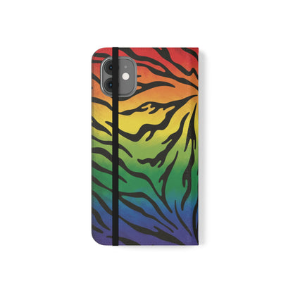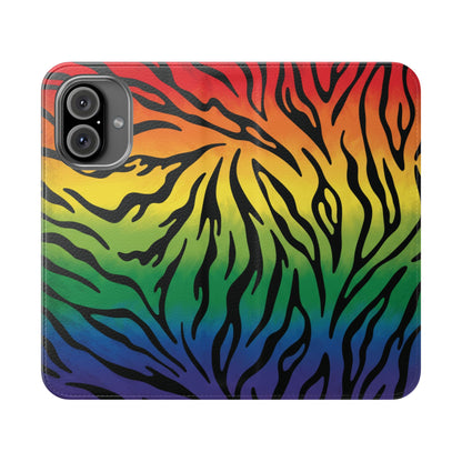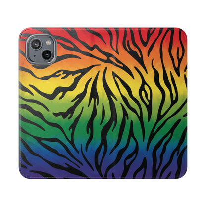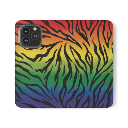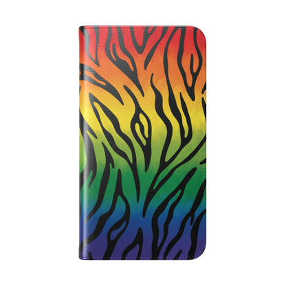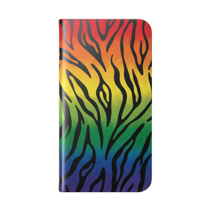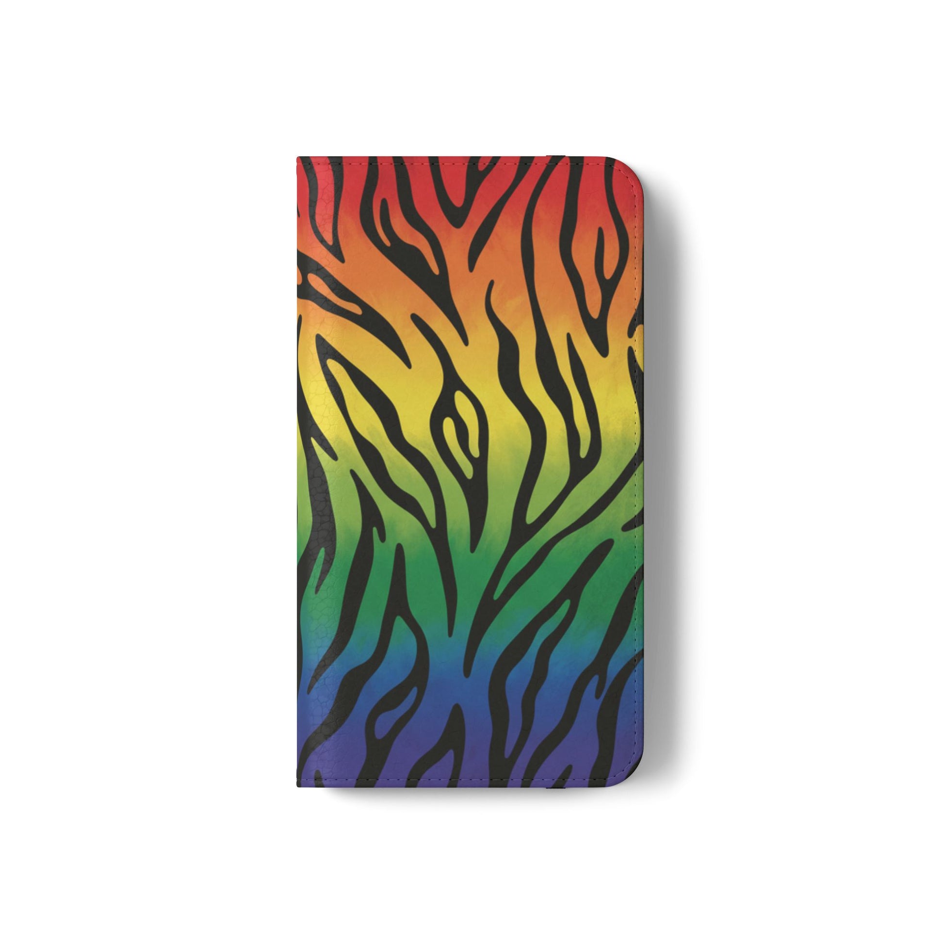 Rainbow Zebra Flip Phone Case – Colorful Pride Wallet Cover